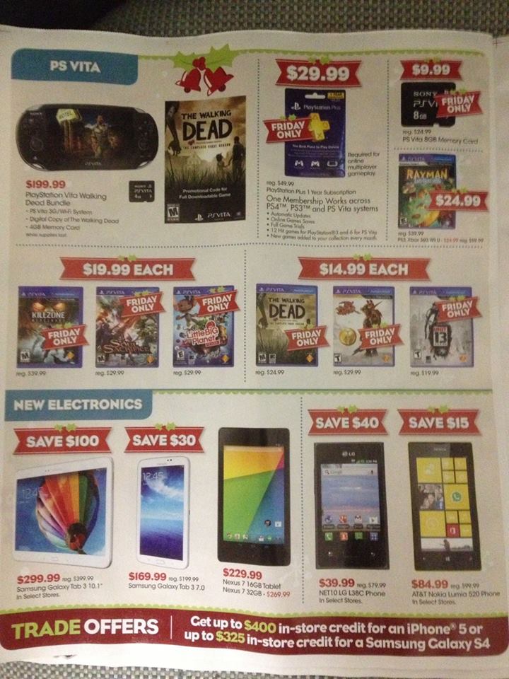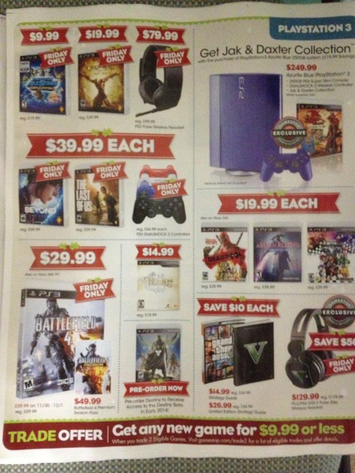 In the meantime, here’s the full 12 page flyer leaked today, which includes great deals like a 250GB The Last of Us bundle with Batman: Arkham Origins for $199.99, Battlefield 4 for $29.99, Call of Duty: Ghosts for $49.99, Need for Speed: Rivals for $39.99, 1 Year of PlayStation Plus for $29.99, and much more:
