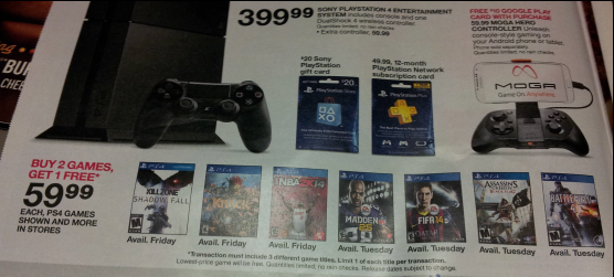 Yesterday we let you know of a leaked Target flyer that suggested select PlayStation 4 launch titles would be available in a buy 2, get 1 free deal between November 10th and 16th.