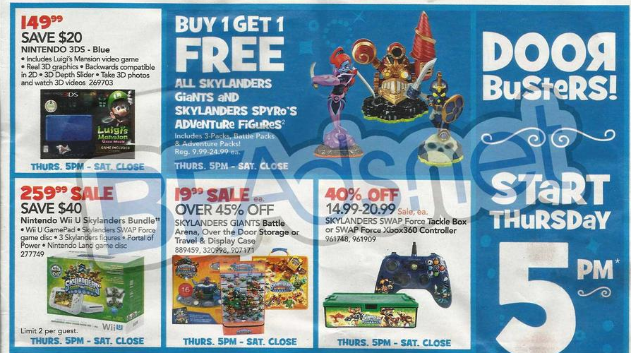 - Skylanders SWAP Force – $37.49 (Thursday, November 28th from 5PM to 9PM only)