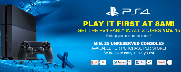 Both Future Shop and Best Buy in Canada have confirmed that their stores will not only open at 8AM on Friday, November 15th, but every store will have 25 unreserved PS4s available for sale to those who don’t have a pre-order.