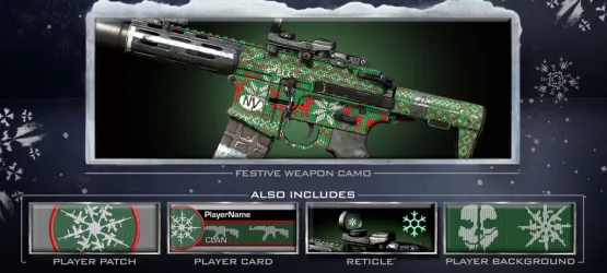 - Out for Xbox 360 and PC on December 12th, and all other platforms by December 18th, Call of Duty: Ghosts is getting a free Festive Personalization Pack. With this you’ll get a festive weapon camo, Player Patch, Player Card, Reticle, and Player Background. [Twitter]