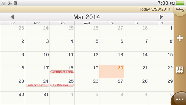 • A Calendar application has been added for PS Vita, allowing you to set up gaming events with your friends. Sync your Google calendar to have all your events with you on your PS Vita. You can also share your favorite events by using the Messages and Email applications.
