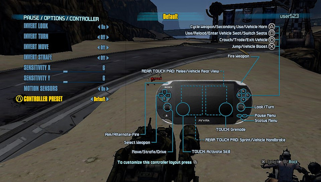 Saying Borderlands 2 PS Vita is “generally hovering in the vicinity of 30 frames-per-second,” they also detailed that the controls in the game are customizable, as shown in this screenshot: