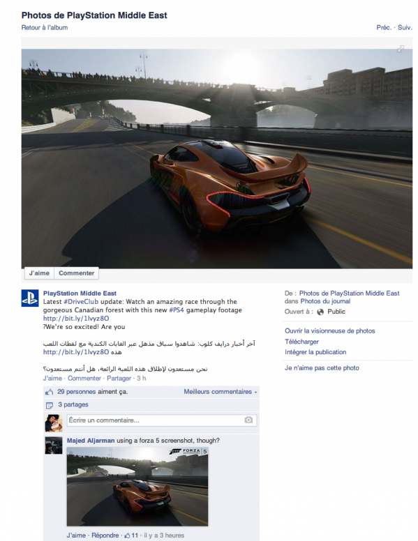 In a funny mix-up over the weekend, PlayStation Middle East’s Facebook Page went to promote the latest DriveClub gameplay video, but in the process, they used a screenshot from Forza 5 to do so: