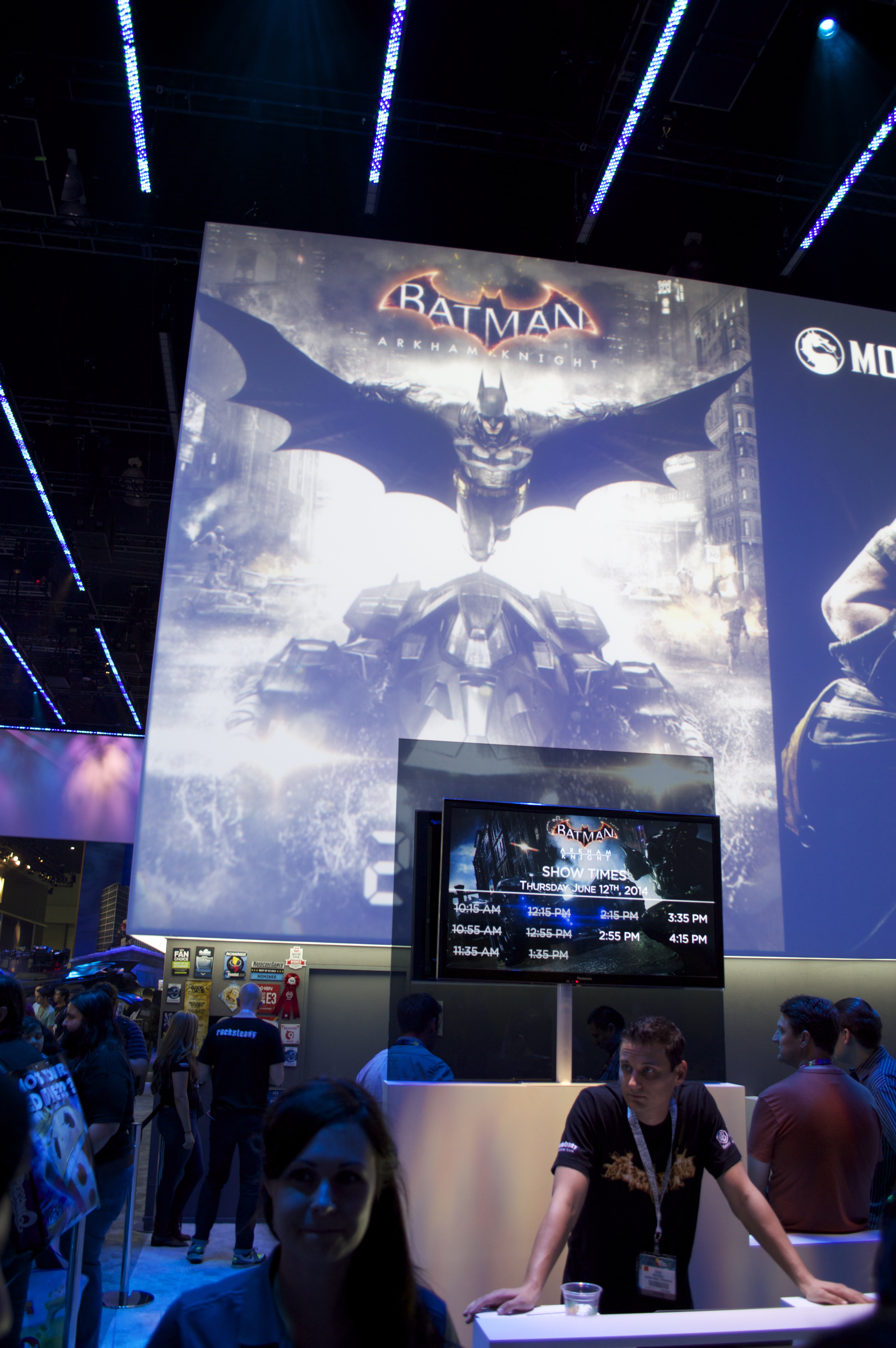 At E3, Warner Brothers’ booth was an impressive one. A towering structure housed theaters that showed screenings of their newest, upcoming titles. Upon entering into this grandiose building-within-a-building, we were treated to a play-by-play of some new gameplay sequences for Batman: Arkham Knight.