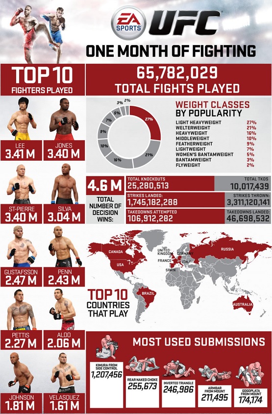 Back in April, we were told that Bruce Lee was going to be an unlockable character in EA Sports UFC. In an interesting infographic shared by Electronic Arts, it appears that Bruce Lee is actually the most-used fighter in the game!