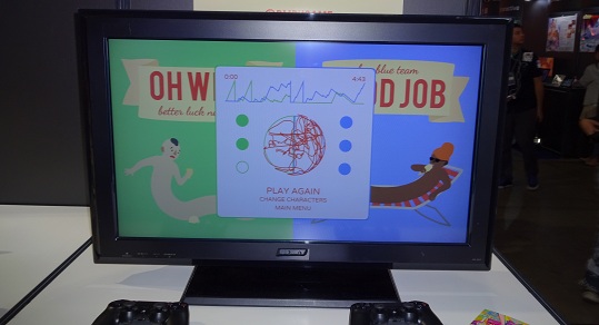 In my first match, I played one-on-one against another random TGS attendee; we each controlled both of our team’s heads — left stick for one head, right stick for the other. In my second match, I teamed up with someone, with me controlling one stick and my teammate using the other half of the same DualShock 4 controller. Both matches were quite entertaining. I can see this game being very cool to have at parties.