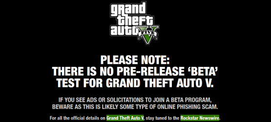 In the wake of some fake beta invites going out to gamers, Rockstar Games created a new section of their website to let you know that “there is no pre-release beta test for Grand Theft Auto V.”