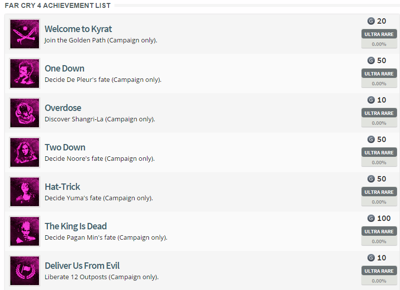 A list of all the possible Far Cry 4 achievements has been posted online, giving more details of the game itself.