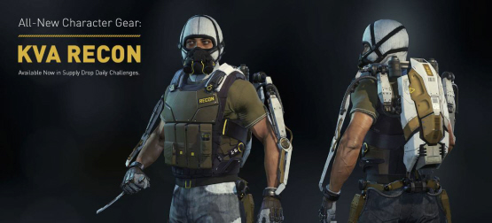 Each day, you’ll receive a randomized message containing a challenge that, when completed, will award your character with an XP bonus and Supply Drops, or a rare piece of Character Gear from the Exclusive KVA Recon Character Gear Set. The Supply Drop Daily Challenges will be displayed in the “Find Match” menu, and can also be found in the “Challenges” menu so you can track your progress towards completing them.