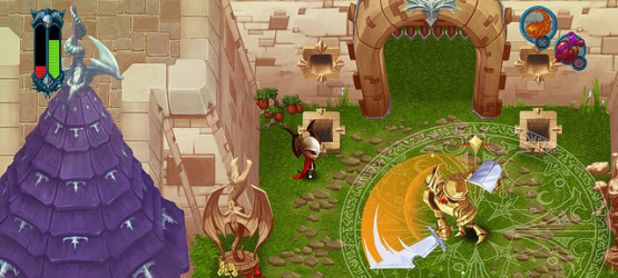 Of course, the champions of good won’t just sit around and let Rack have a field day. You won’t get far before the local Dragon Protector Amon shows up to pick a fight. Not that silly self important dragons send shivers down Rack’s spine. Rack is ready for any confrontation with over 25 unique weapons and items to unleash upon the things Rack doesn’t like. Which, in this case, is everything. He can summon options, turrets, bombs that turn into black holes, swirling tornados of fire, and many more contraptions of death.