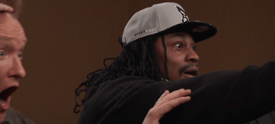 Taking a break from talking at length with the media and singing Katy Perry, Marshawn Lynch of the Seattle Seahawks and Rob Gronkowski of the New England Patriots sat down with Conan O’Brien to play Mortal Kombat X.
