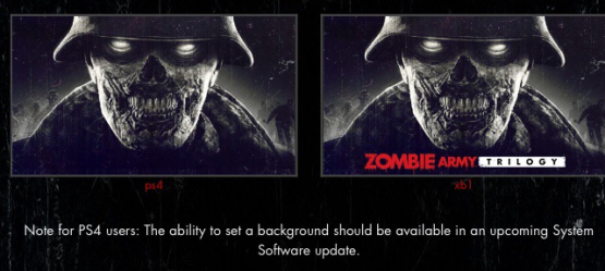Definitely something that should be treated as a rumor for now, the Zombie Army Trilogy website suggests that the PlayStation 4 could be getting the ability to set custom backgrounds in an upcoming firmware update.