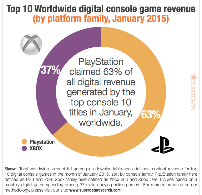 With the January 2015 retail report for the US revealed earlier this month by the NPD, research firm SuperData has given their report on January 2015 through digital channels in the US.