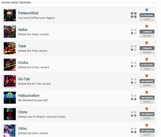 The full Trophy lists for Axiom Verge and 5 Star Wrestling have both been revealed, and it looks like both titles will feature a Platinum Trophy.