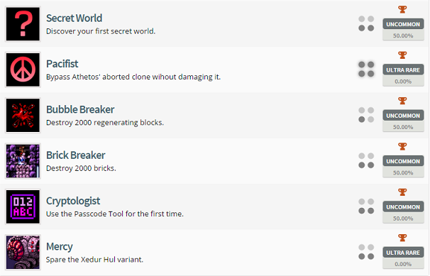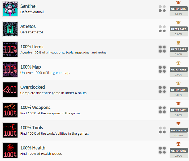 Axiom Verge, which is set to come out for the PlayStation 4 and the PS3 on March 31, sports 30 obtainable Trophies. According to the list, which can be seen below, most Trophies can be snagged by either killing certain enemies or collecting certain things.