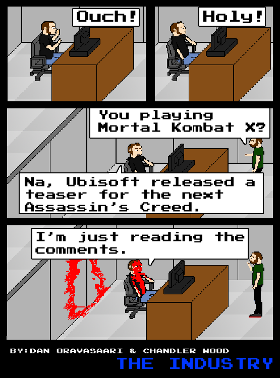 Welcome to the The Industry, our new web comic series set in a fictional world about video games. Make sure to stay tuned each week as we evolve the adventures of the characters within The Industry every Friday at 6:30 pm PST (9:30 pm EST).  As we are still developing the series, we would love to hear what you think about it, so make sure to let us know in the comments below.