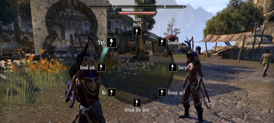 As well, a Quick Chat system will be included with The Elder Scrolls Online on PS4 and Xbox One. This allows you to select from a collection of pre-made phrases, set them to your shortcuts, then hold down right on the d-pad and use the right thumbstick to choose one.