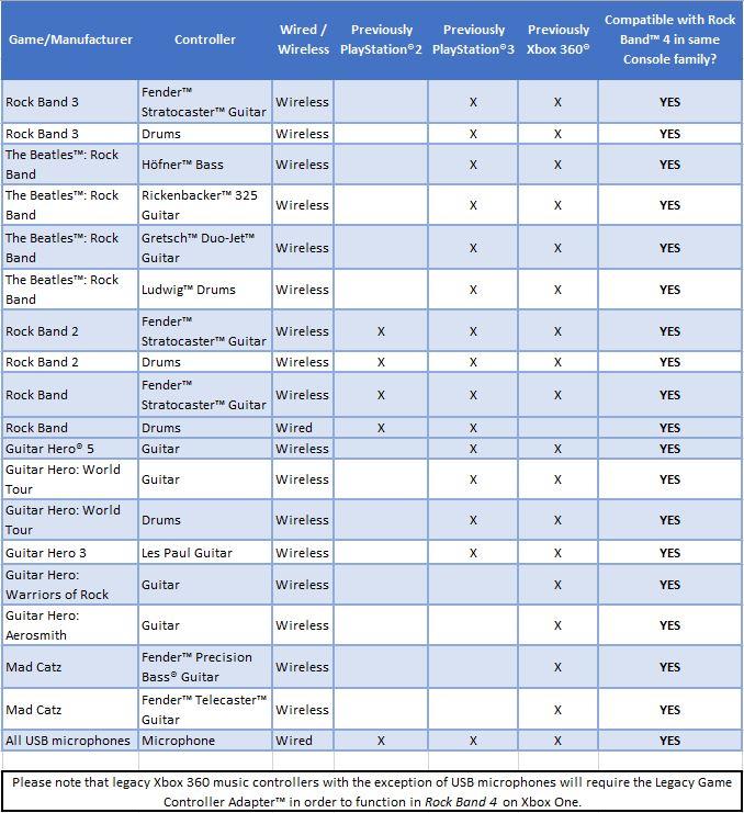 If you’re curious about which instruments work with Rock Band 4, Harmonix released this instrument compatibility chart: