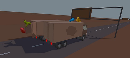 Besides being beaten up and then thrown by my opponents during my time with the game, I also found myself accidentally committing suicide a lot. On the truck level, for example, I had almost defeated my three other opponents, when all of a sudden, the truck drove below a sign and it knocked my onto the road. I wasn’t all that upset over it, though, since the sight of my blooby creature being knocked off of the back of the truck was, well, hilarious.