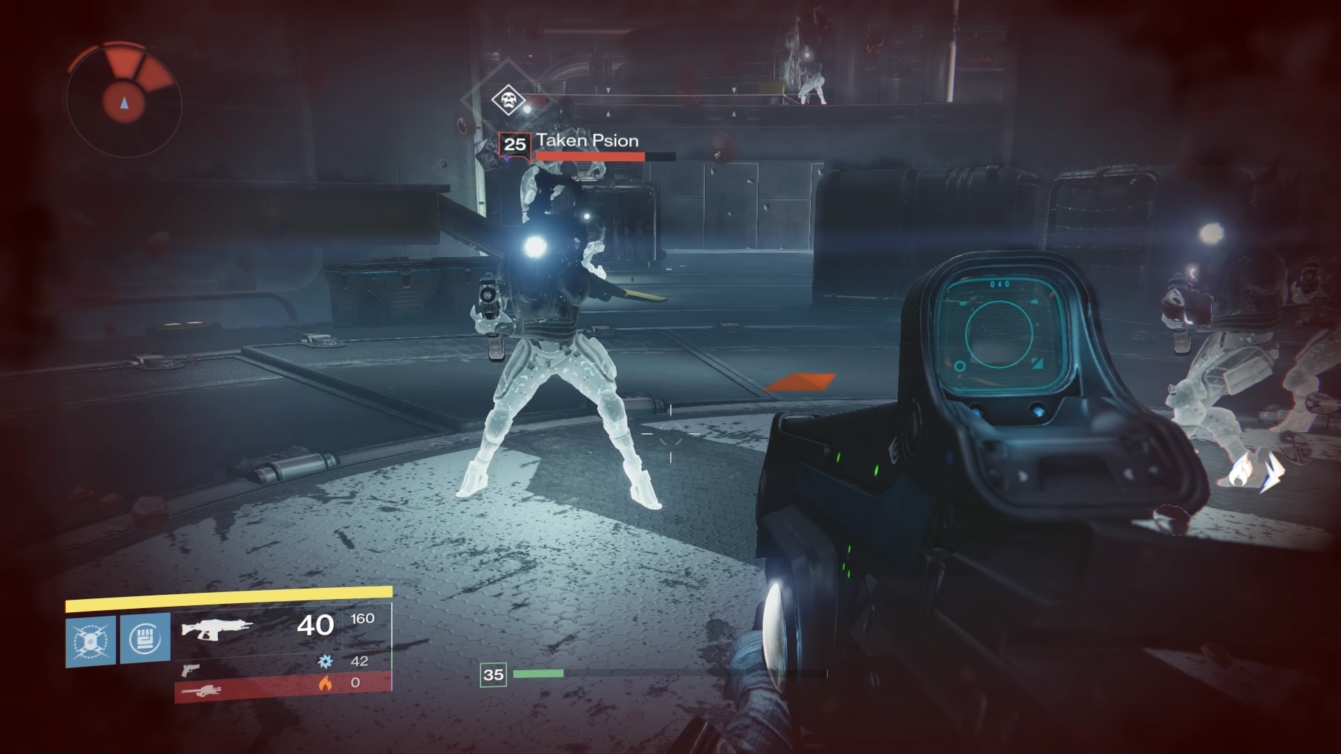 Ah, the Psion. Smallest of the Cabal forces, but in no way less lethal. The Taken versions have the ability to split into two, copying themselves. Don't let even one of these guys get away from you or you might have a small army to deal with when you come around that corner.