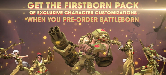 Battleborn launches on February 9, 2016 for PlayStation 4, Xbox One, and PC. Those who pre-order will receive an exclusive set of golden skins for Thorn, Reyna, Montana, Marquis, and Rath in the Firstborn Pack.