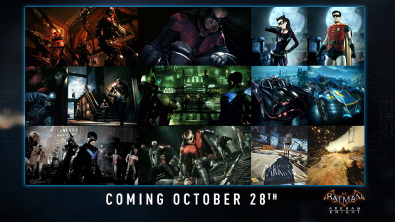 Over on the forums, Arkham Community Manager Coda confirmed that all of the Batman Arkham Knight October 2015 Season Pass content is releasing tomorrow, October 28 at 10am PT/1pm ET, along with the PC version’s re-release.
