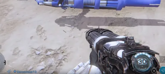 While the player is completely alone on the map, with no bots or other players in sight, there are still power-ups and pick-ups, as well as ships flying overhead. The gameplay gives a nice round-up of what equipment would have been available to players, should the game have survived up until public beta.