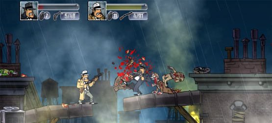 Imagine The Godfather playing Metal Slug on the Night of the Living Dead. Guns, Gore & Cannoli is an over-the-top, comical, fast-paced action game with hand drawn graphics set in the Roaring Twenties. Meet Vinnie Cannoli, a hard-boiled gangster who comes to Thugtown, to find a goodfella who is gone missing. Nothing that can’t be solved with a kind word with the local gangsters though. Especially when you’re packing a Tommy gun and a double barrel shotgun to be a little more persuasive. There’s only one thing that’s holding him back… Every friggin’ lowlife in the city turned into a flesh-eating maniac. This is survival horror, wiseguy style… Capiche?