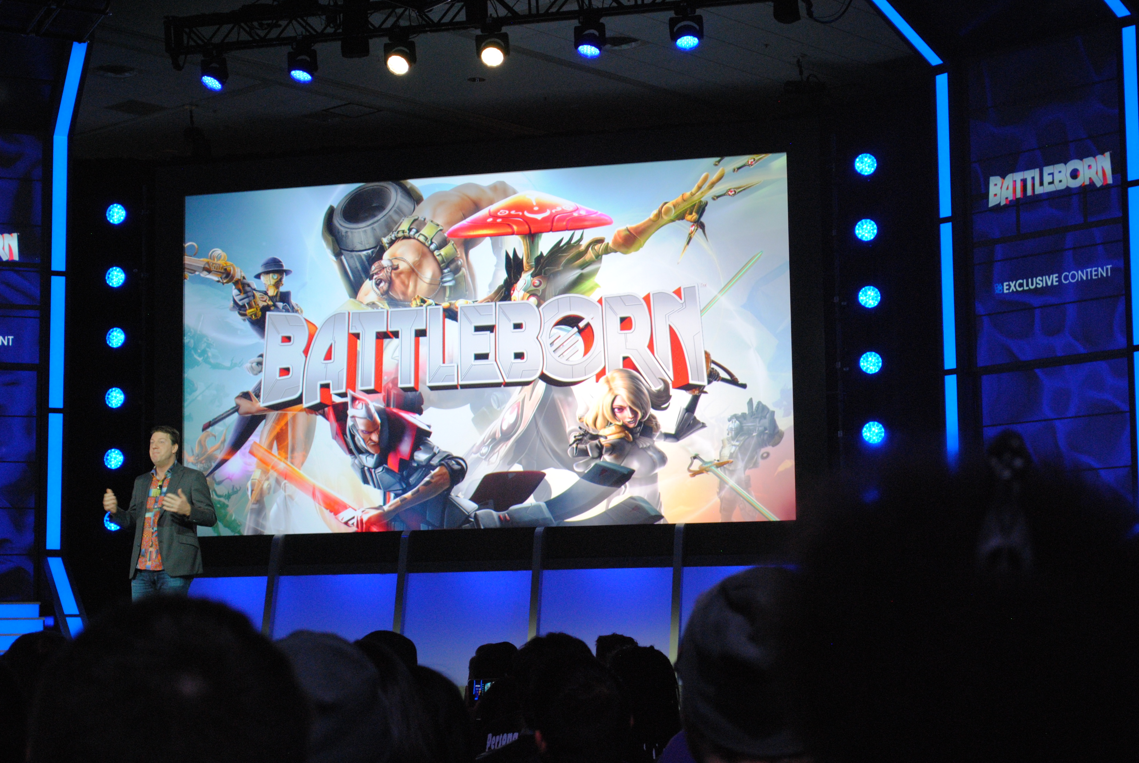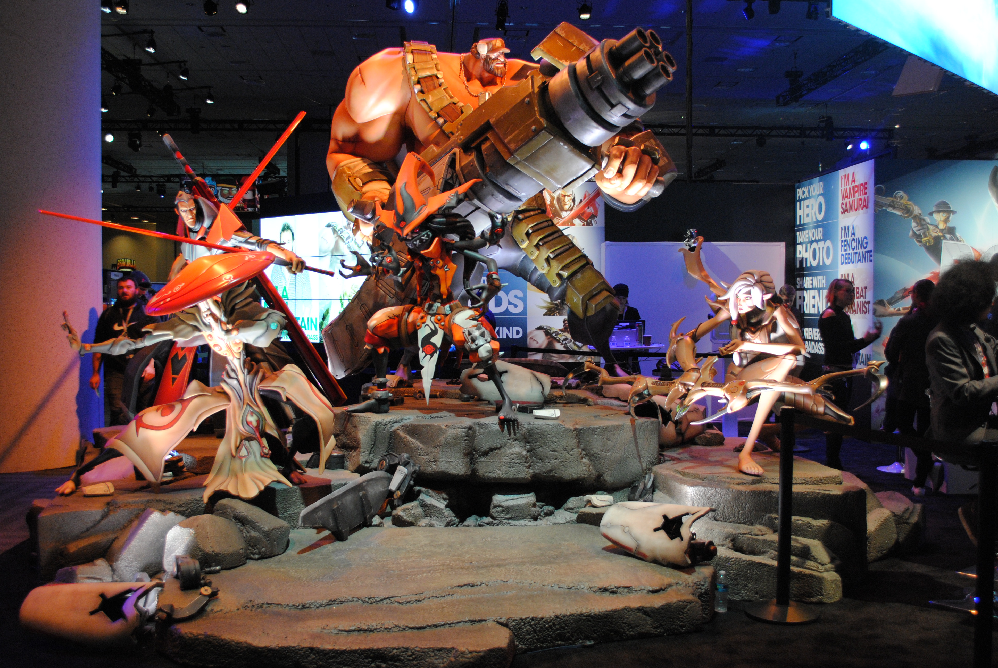 A huge display showcases some of the characters from Battleborn.
