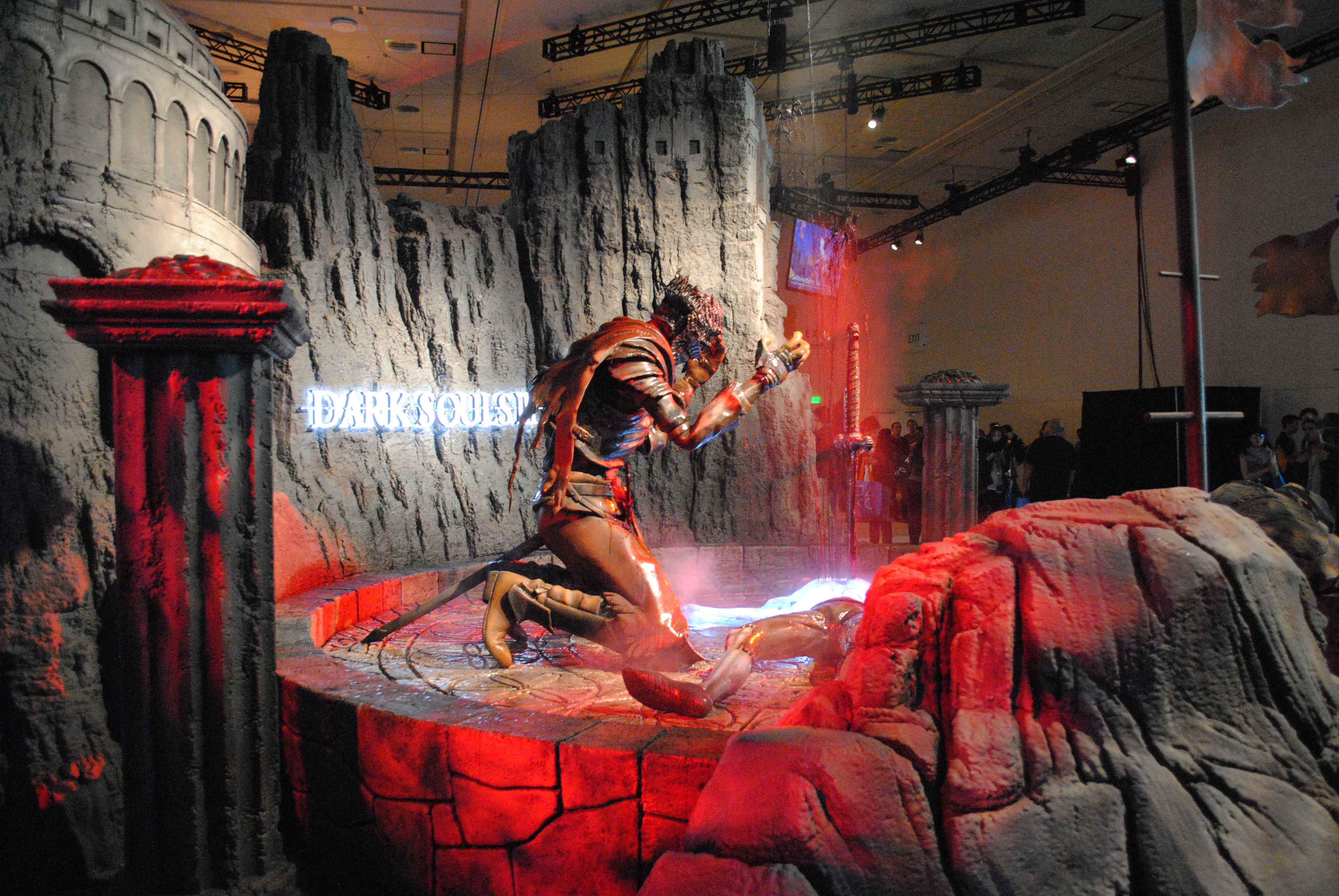 An enormous statue of the character from Randall looms over their booth.