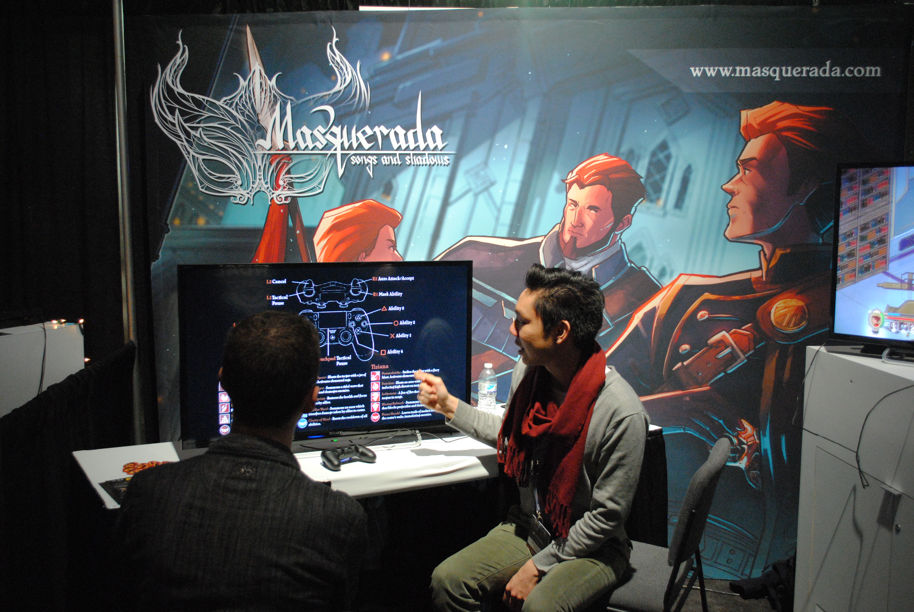 Chandler is shown indie game Masquerada by one of the devs.
