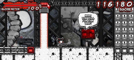 I Want To Be Human is packed with crazy platform blasting action, a pulsing electropunk audio score, wildly dark tongue-in-cheek humour, and lashings of exploding body parts. Players will aid our vampiric protagonist on her journey through hell and back (literally) to save her beau. Along the journey players will unlock abilities they never knew they had while blasting their way through five worlds of blood-soaked monochromatic mayhem. And who knows, they might even set a new high ‘sgore’ (ahem) into the bargain…