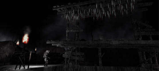 We are introducing a game with an unsettling, gloomy, and intriguing atmosphere. It is designed in grey scale colors with vivid blood red being displayed in dangerous and deadly situations. In order to increase the sense of claustrophobia and panic, fixed camera angles have strategically been placed to force the main character to confront his worst nightmares. In moments like this a very powerful ally will be helpful to furiously tear apart and destroy your enemies.