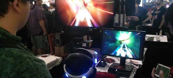 Gibson and Flury are veterans of the rhythm genre, and that’s pretty clear both from their credentials (they’ve worked on games at Harmonix together for years) and the simple act of playing the game itself. With a central conceit that can be learned in just a few minutes of play, no tutorials required, and a structure that encourages you to recognize sections of “notes” with the same sort of muscle memory required of playing an instrument, Thumper provided one of the most exciting experiences I had during my time at PAX East. While a release date has not been set yet, Drool intends to have you facing the rhythm violence head-on at some point this year on PS4 and PSVR — and if you’re a fan of rhythm games, or are just looking for something to convince you of VR’s potential, there’s no question in my mind that you should keep this one on your radar.