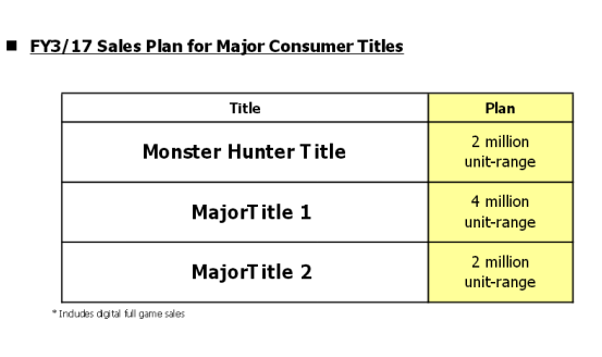 Highlighting their plans for major titles this year, Capcom said they expect a new Monster Hunter game to move around two million units, while two unannounced games are expected to move four million and two million units, respectively.