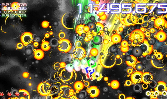 Our goal was to make the most philosophically pure shoot ’em up — to truly test how skilled you are in a way no other shmup has. A key piece was redefining the scoring mechanic: removing all bonus points and measuring only domination itself. No gimmicks. No hidden points. No puzzles. To get the highest score, destroy everything as fast as possible. An example, does saving bombs or lives – something that normally awards bonus points — help destroy enemies? No. So, no points are awarded. Purity!