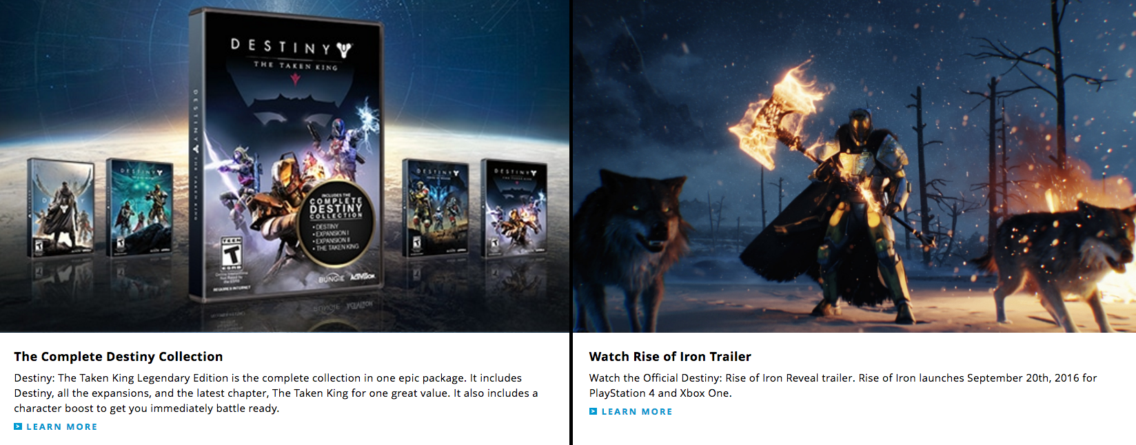 According to DestinytheGame’s homepage (now updated), Destiny: Rise of Iron will release on September 20 for PlayStation 4 and Xbox One. The listing makes no mention of a PlayStation 3 or Xbox 360 release for Rise of Iron.