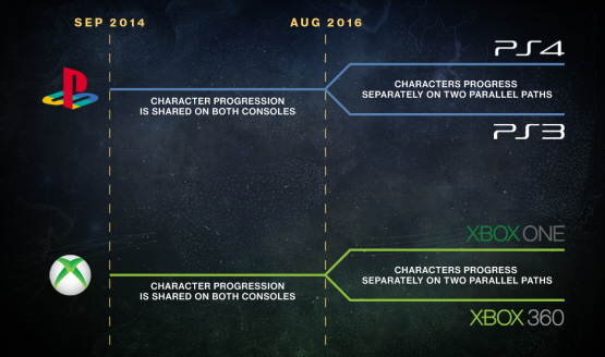 Our goal is always to bring every player from this awesome community along for the ride as we continue the story of Destiny. At the same time, we will also continue to support players who elect not to upgrade their console hardware. This Fall, you’ll still be able to play Destiny on legacy generation consoles, but that journey will occur on a separate path. Up to this point, player progression between current and legacy consoles in the same family has been shared by each account. This summer, that experience will fork into two parallel experiences that will no longer share progression.