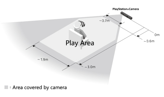 Suggesting that people sit while using VR headsets, Sony outlines the recommended play area for PSVR in the above image. In a brochure, they add: