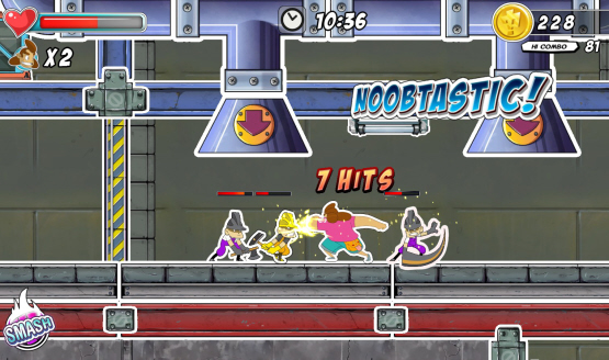 Already available on PC, Super Comboman sees you playing as Struggles, a man with no real skills (he does have a sweet mullet and a talking fanny pack though) who must work odd jobs to help support his family. “Instead of completing his tasks the right way, he ends up busting combos on everything in sight,” Creative Director Justin Woodward explains. “Uppercuts and wall climbs abound, you’ll jiggle, juggle, and jab your way through your coworkers and bosses.”