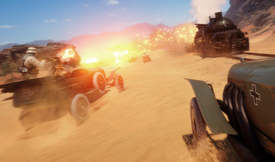 “From infantry skirmishes in the narrow streets of the village of Bir el Mazar to dogfights above the majestic cliffs, you’ll need to make tactical use of the dunes as you engage in explosive battles,” EA says of the Sinai Desert map included in the Open Beta. “When all hope is lost, reinforcements will arrive in the shape of a powerful Behemoth: a deadly Armored Train charging through the desert sands.”