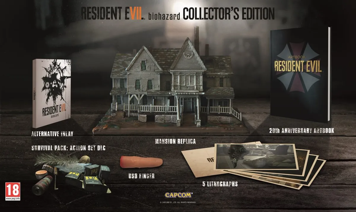 Featuring a different mansion than the US Collector’s Edition, a 16GB Dummy Finger USB Drive, a 20th anniversary art book, and more, the European Resident Evil 7 Collector’s Edition was revealed today by Capcom.