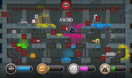 Once a handful of rounds had been played, a randomly-selected player was chosen to pick a mutator. These are new, quirky rules which can enhance (or disrupt!) gameplay for rounds played going forward. The rule chosen was one that allowed for players who were killed to kill other players after death, something that can very easily be forgotten in the heat of battle. Everything about Move or Die facilitates quick rounds with hilarious results.