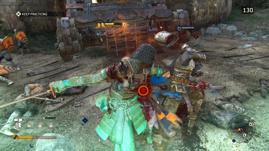 The real fun comes when fighting human characters, as For Honor has a fun combat system that has plenty of depth to it. Players can lock onto foes by holding down the left trigger, and then can position their weapon into three different positions (up, left, and right) by using the right stick. This positioning is used both for offensive strikes and defensive deflections, as the player can counter their foes attacks with a well timed flick of the right analog stick.