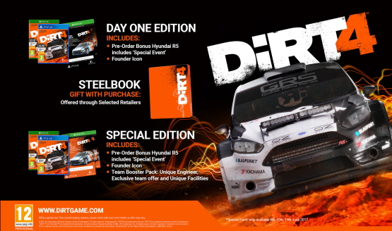 By picking up the Day One Edition of DiRT 4 when it launches this June, you’ll receive an exclusive Hyundai R5 rally car, access to a unique Hyundai event, and a Founder Icon, Codemasters and Koch Media announced today. Select retailers (TBA) will add a steelbook to the Day One Edition.