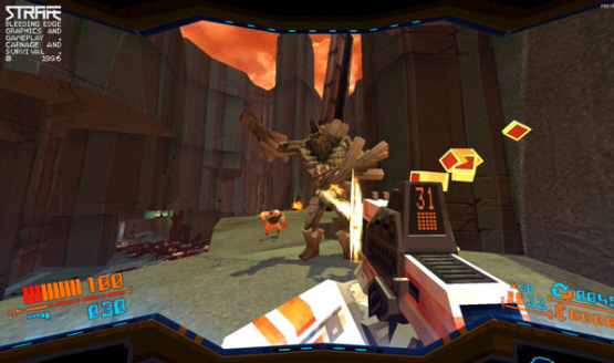 The “fastest, bloodiest, deadliest, most adjective-abusing, action-packed first-person shooter of 1996,” Strafe is releasing on May 9 for PlayStation 4 and PC, Devolver Digital and developer Pixel Titans announced today. It was originally scheduled for this month, but as Game Director Thom Glunt explained, some of the polygons arrived late: