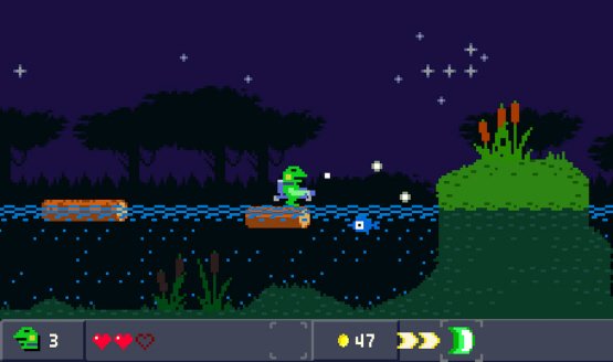 Kero Blaster is a linear side-scrolling action platformer. In contrast to the detailed exploration of Cave Story, in Kero Blaster the player simply proceeds right, encounters enemies, defeats the boss and moves on in a series of seven different stage types.