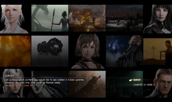 With the new Final Fantasy XV update today on PlayStation 4 and Xbox One, Square Enix has added an in-game survey that asks what content you would like to see added in future updates and DLC. The survey will be available until the end of June, which is when the next update is scheduled to launch.