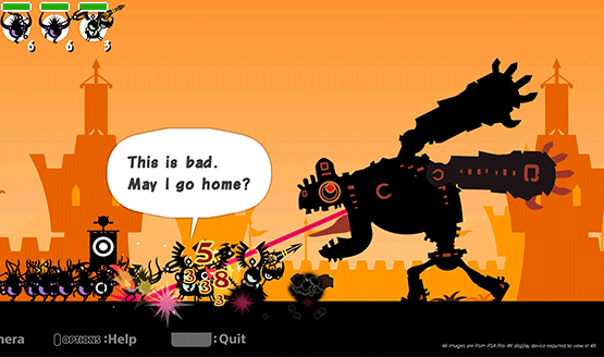 - Strategic Gaming – Patapon delivers a strong element of strategy by requiring players to properly customize and build up the Patapon army, arm each soldier with particular weapons and armor, and position them correctly for battle.